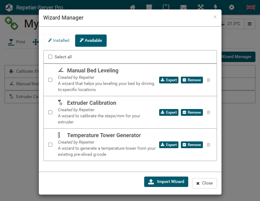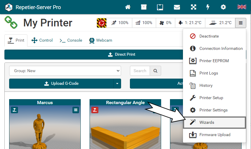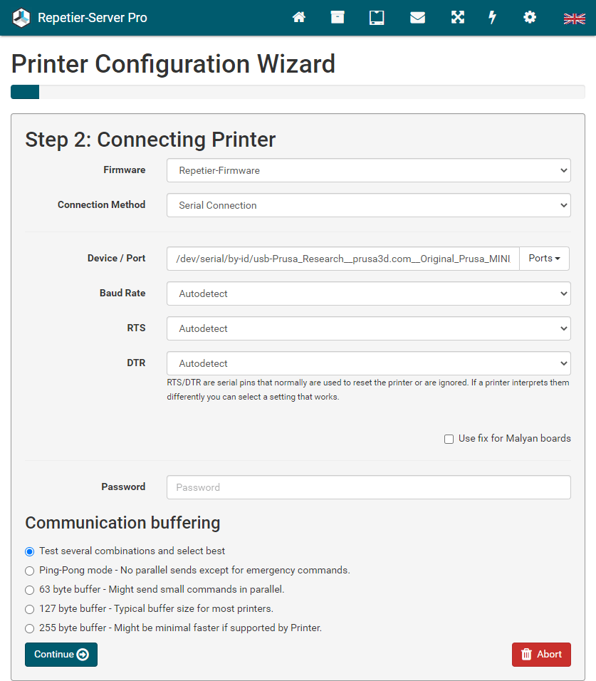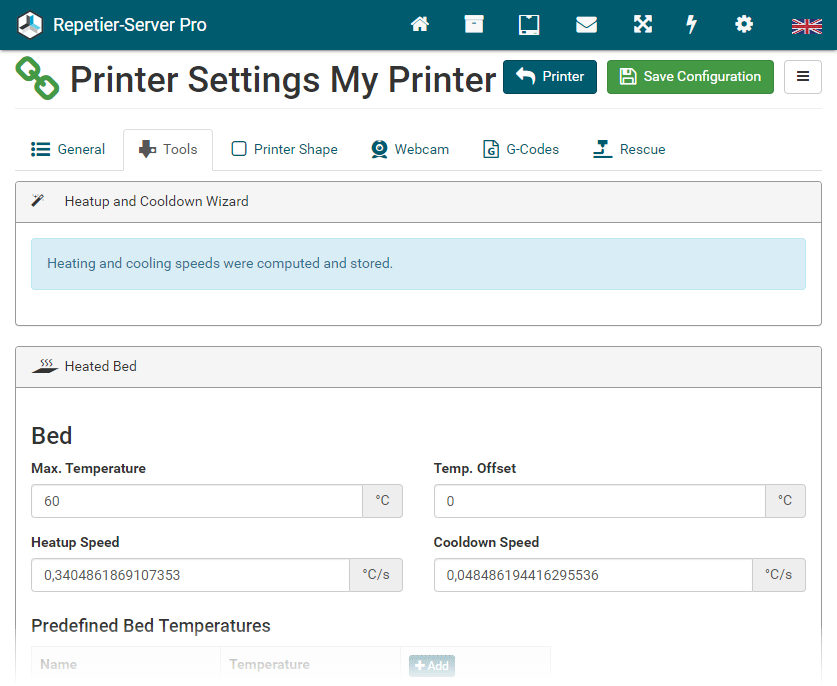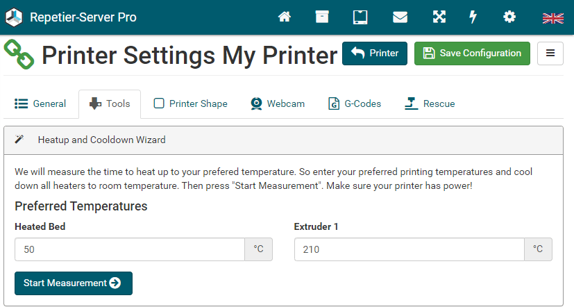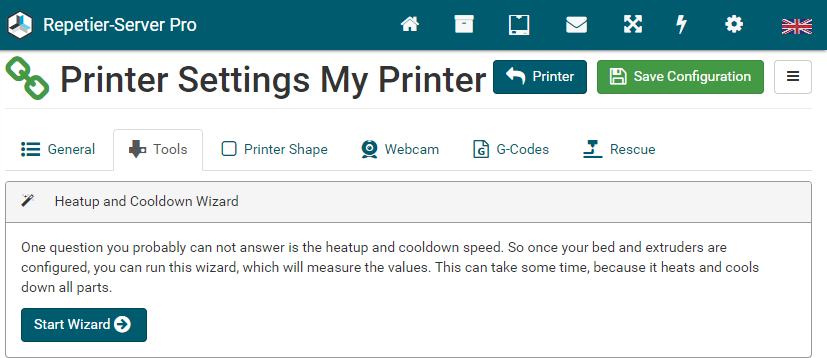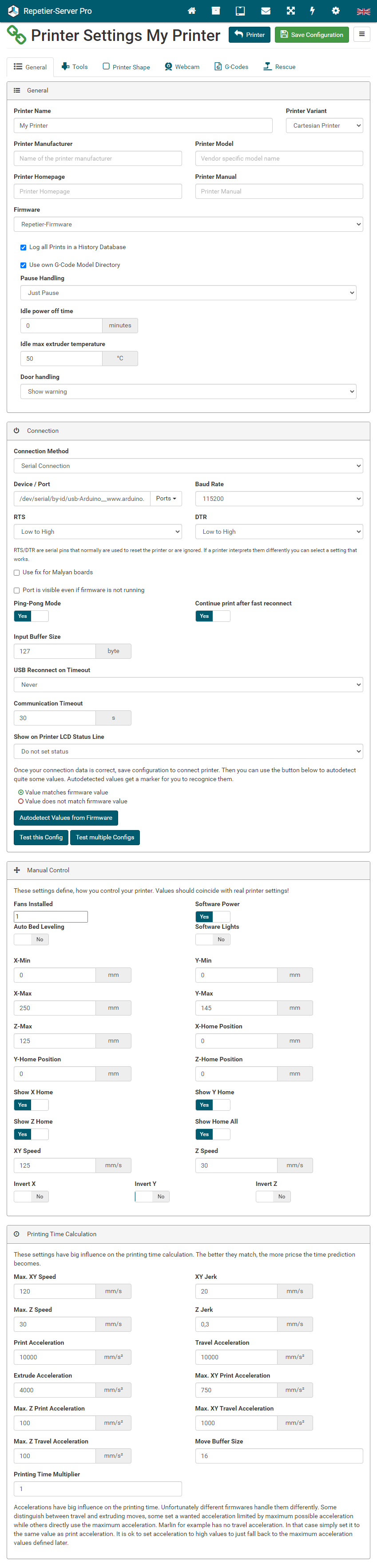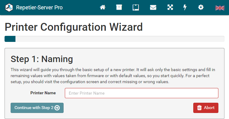 The easiest way to set up a new printer is to upload an existing config file. Go to