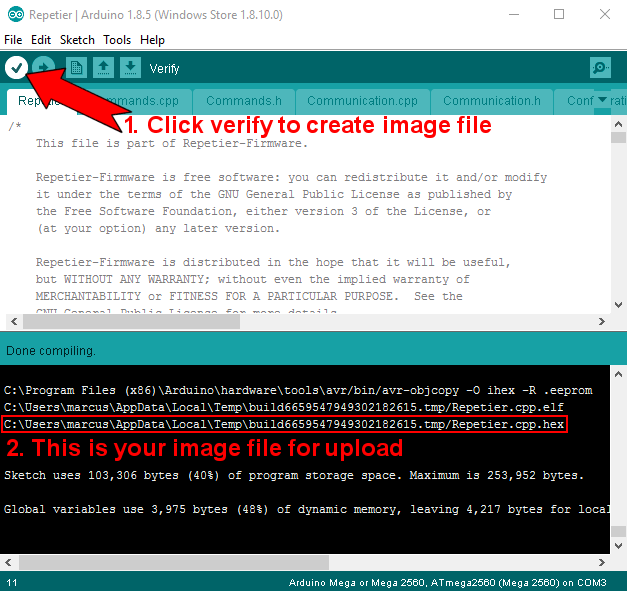 the firmware name is send by the printer, you want a info dialog with the name. To achieve this, you send