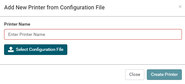 Configuration. Enter a printer name, select the configuration file and click Create